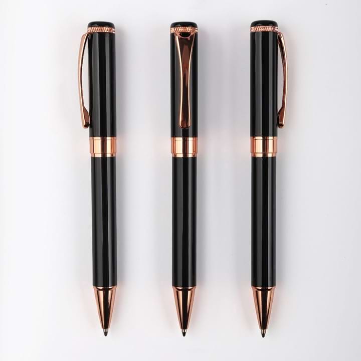 If you are looking to curate your corporate stationary gift set, the Tokke is a great addition. The Tokke is a ballpoint pen in brass and steel and has a black spray paint barrel with a rose gold accent, which gives it a royal, exquisite look and feel. Engraving provides the Tokke with a mirror effect and a premium look. Combine the Tokke with our range of organizer’s, executive notebooks, or folders to make a stylish corporate gift combo.