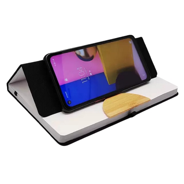 The Renoot A5 RPET Notebook blends eco-friendly materials with smart design. Featuring a bamboo cover, foldable phone stand, and pen loop, this notebook is perfect for the environmentally conscious. Whether for taking notes or propping up your phone during meetings, it’s a versatile addition to your workspace.