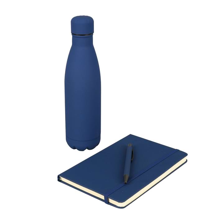 Grati is our popular gift set comprising a vacuum water bottle, notebook and pen. In matching colours, the items in the Grati gift set to offer a premium touch and feel. The insulated double-walled stainless steel water bottle keeps drinks hot for 5 hours and cold for over 10 hours.