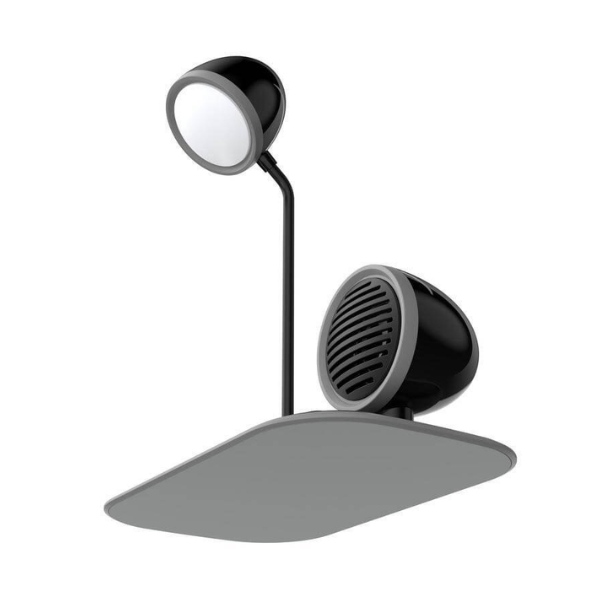 - A retro-styled table speaker, 15W wireless charger, and adjustable lamp, blending vintage aesthetics with modern technology.