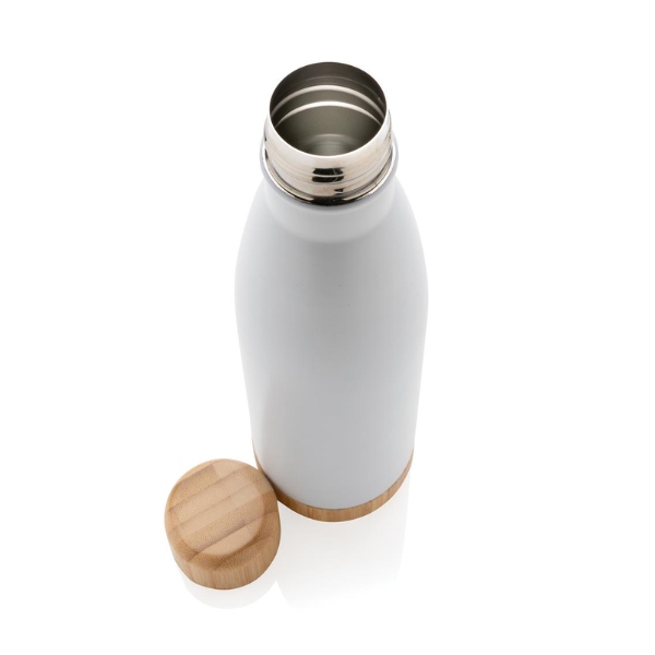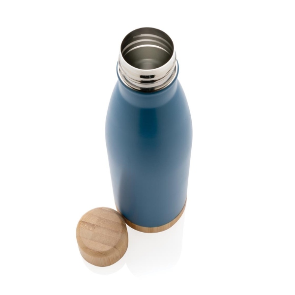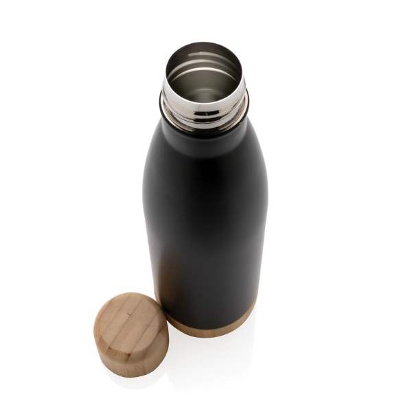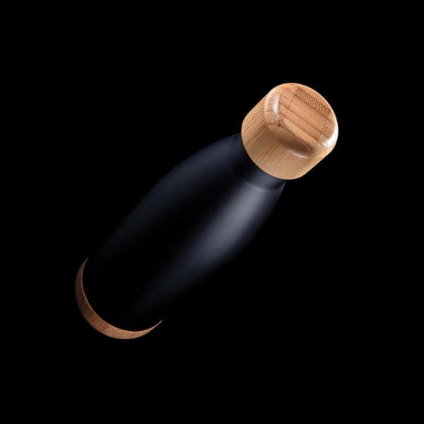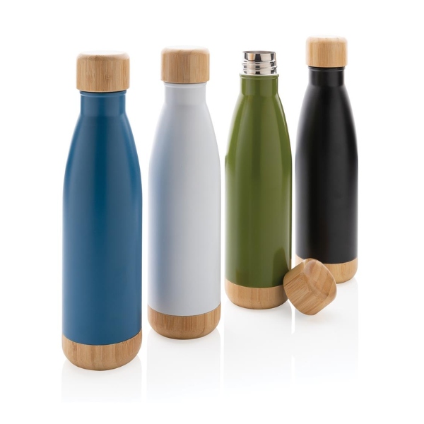 The Trabby Double Wall Stainless Steel Bottle with Bamboo Lid and Base makes an eco-conscious and stylish corporate gift.