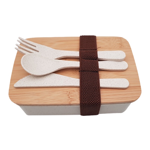 Ostra Wheat and Bamboo Lunch Box, a top choice for Corporate Giveaways by Chops. Crafted from eco-friendly recycled wheat lunch boxes, PP, and bamboo, this lunch kit combines durability with sustainability. Featuring a single compartment interior to prevent food mixing and mess, it’s ideal for fresh meals on the go. The included stainless steel cutlery set attaches neatly to the lid, ensuring convenience while maintaining portability at a compact size. By utilizing recycled wheat straw, this lunch box minimizes its carbon footprint, offering an eco-friendly alternative to single-use plastics. Opt for this stylish, bamboo lunch box and embrace an earth-conscious dining experience.