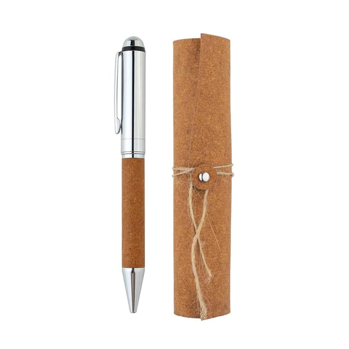 Eco-friendly and affordable, the Anfri is a unique corporate giveaway for your team and business associates. This chrome metal pen comprises a recycled leather barrel and comes packed in a vintage recycled leather tube gift box, making it an exquisitely packed corporate gifting item. The Anfri is available in two exterior colors and comes in blue ink.
