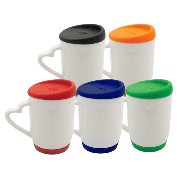 Elevate your coffee experience with our Ceramic Coffee Mug With Silicone Lid and Base. Featuring a sturdy ceramic body, vibrant silicone accents, and a unique heart-shaped handle, it’s the perfect blend of practicality and elegance. Personalize it with your logo for standout corporate gifts or coffee mugs in UAE.