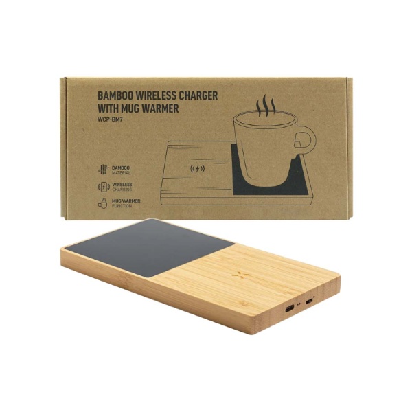 Tawaka – Bamboo 10W Wireless Charger with Mug Warmer