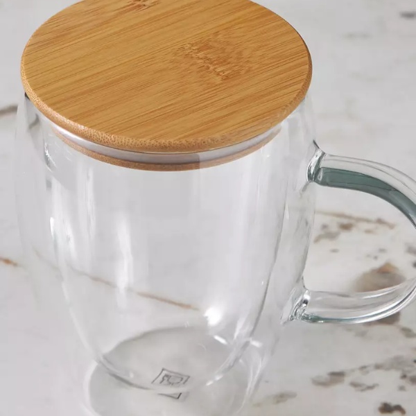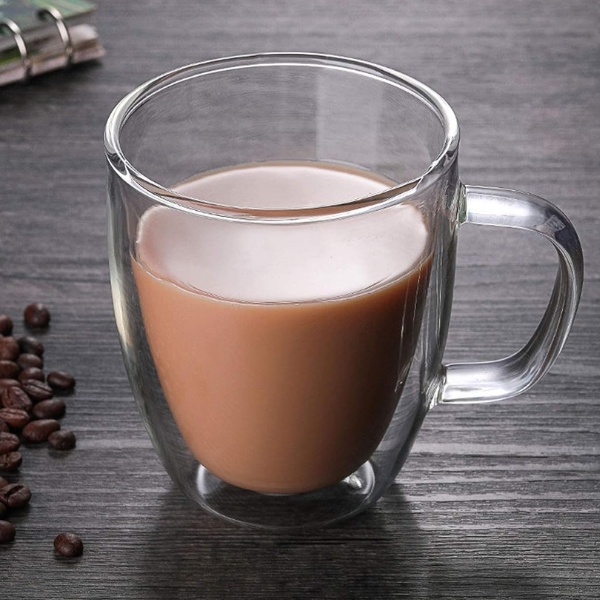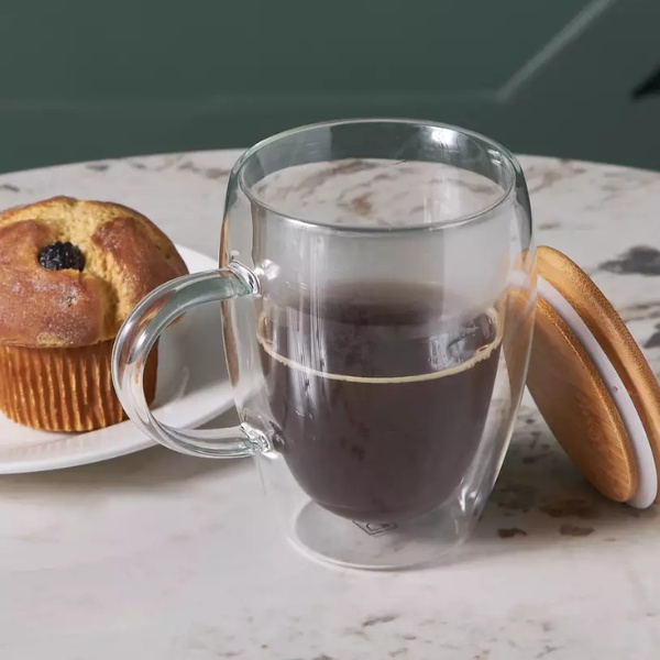 - 350ml capacity double-wall clear glass mug